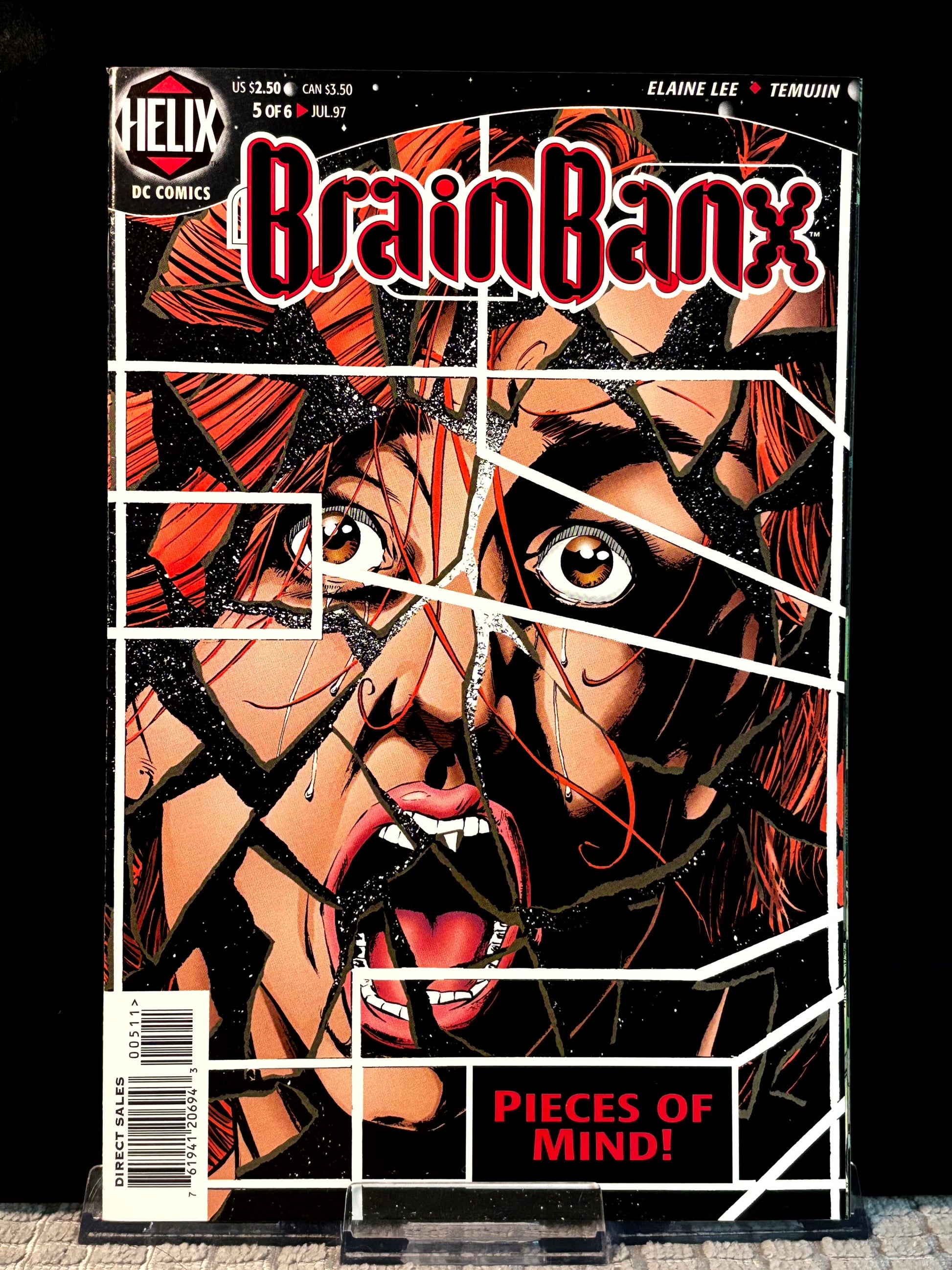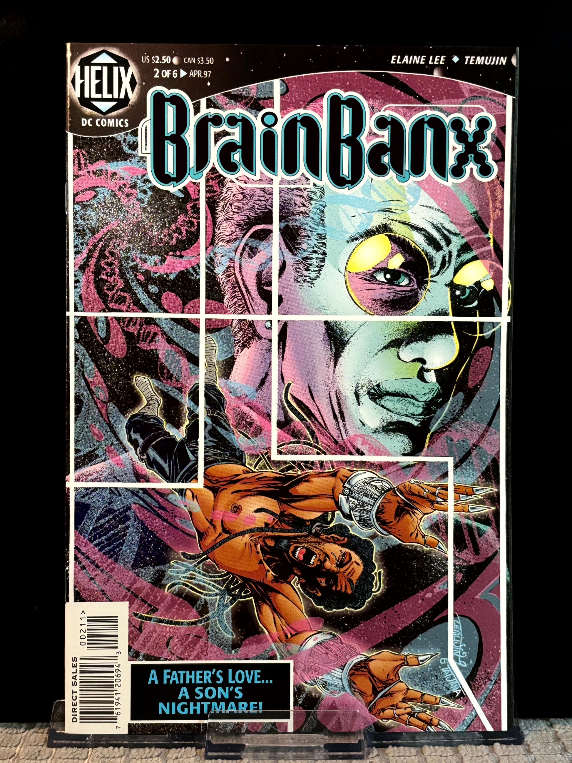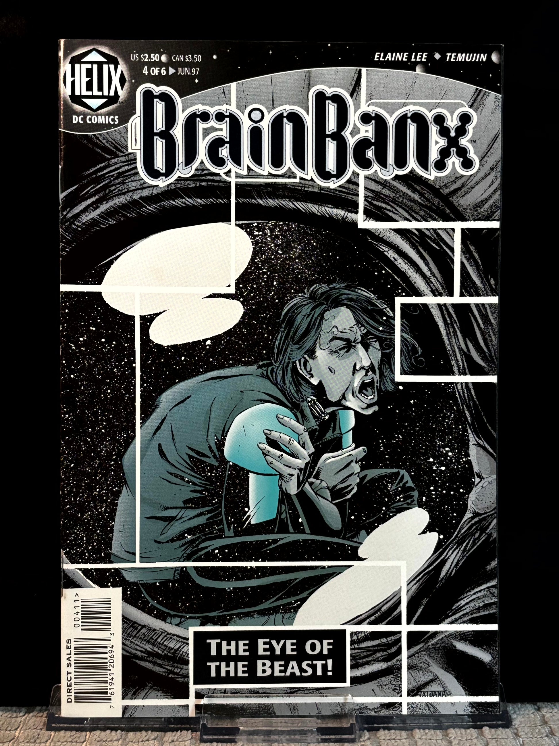Offered is a VF/NM (Very Fine to Near Mint) lot of BrainBanx issues #2, 4, and 5, published in 1997 under DC Comics' Helix imprint — a short-lived line devoted to mature, speculative science fiction. Written by Elaine Lee and illustrated by George Freeman, BrainBanx delivers a richly layered, cerebral cyberpunk thriller that blends noir mystery, biotech themes, and psychological intrigue.