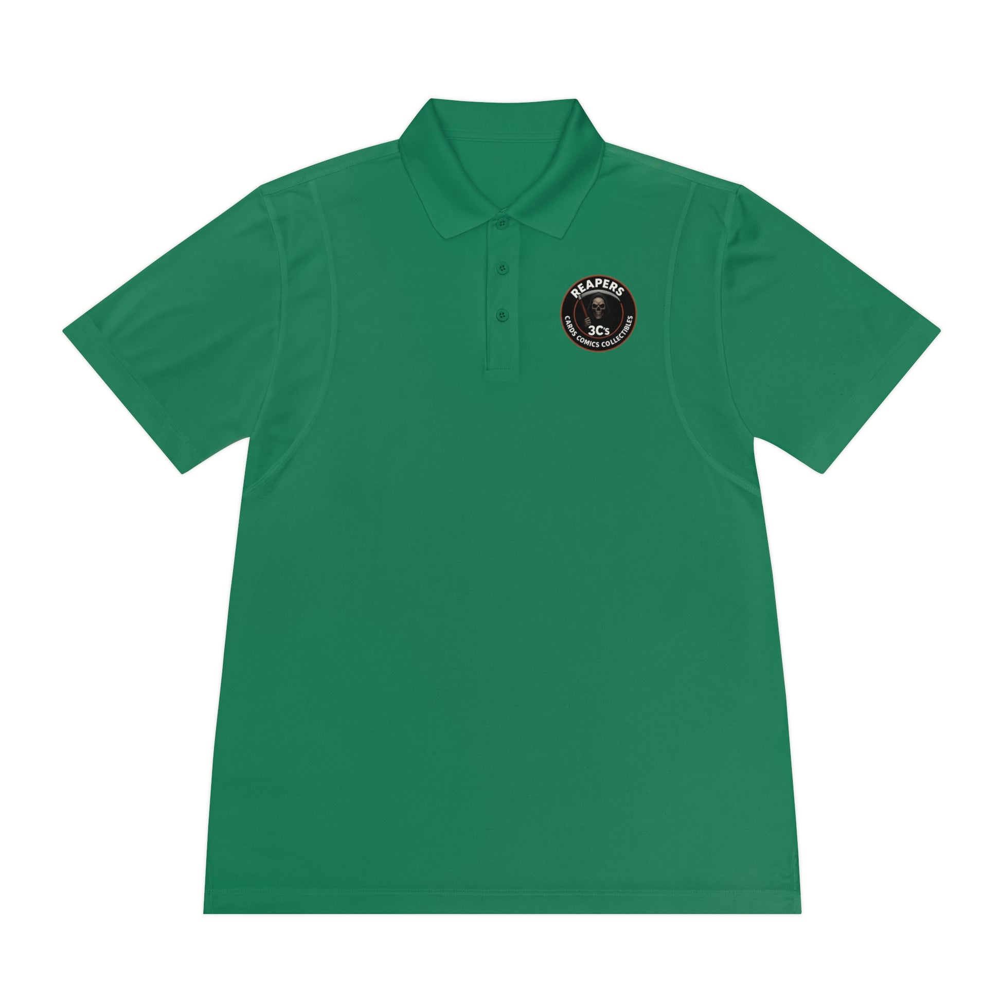 Step up your game with the Reapers 3C’s Men’s Sport Polo – a lightweight, moisture-wicking polo built for comic con days, golf outings, or casual Fridays that still demand a little edge. Embroidered with the bold OG Grim Reaper logo, this shirt blends classic sport style with collector culture.